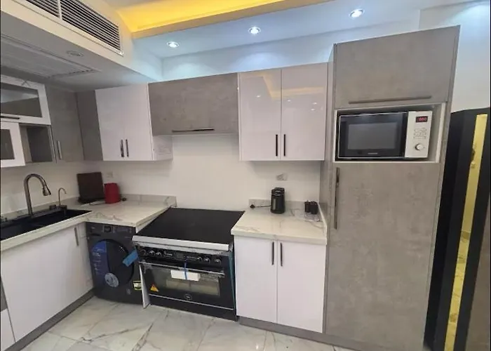 1-slaapkamer Luxus Apartment Hurghada biedt gemakkelijke toegang tot toeristische bezienswaardigheden zoals City Market, gelegen binnen 6 minuten wandelen vandaan. De toegang tot een privézwembad zorgt voor een meer ontspannen verblijf.